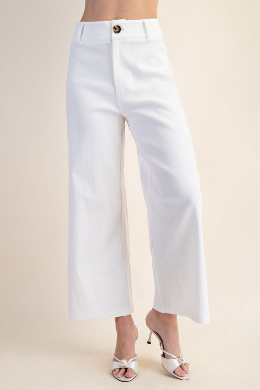 These ivory cropped pants combine stretch and style for a classic summer look. Perfectly adaptable, they pair beautifully with wedges for a dressy vibe or sneakers for a casual feel. Enjoy a timeless outfit that effortlessly transitions from daytime to evening.