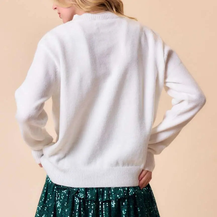 Get ready to dazzle at your next holiday party or Christmas date night with your significant other in our Crystal Neckline Pullover. Made from a luxurious blend of 45% acrylic, 30% polyester, and 25% nylon, this formal sweater features a round color stone neckline trim that adds a touch of elegance. Stay cozy and chic by pairing it with hot pink trousers or silver sparkly pants.