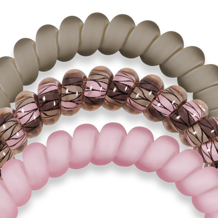 Sage it Ain't So Small Hair Ties in Pink and Sage offer a strong grip without damage, doubling as a chic wrist accessory when not in use. Your new favorite hair essentials all year round.