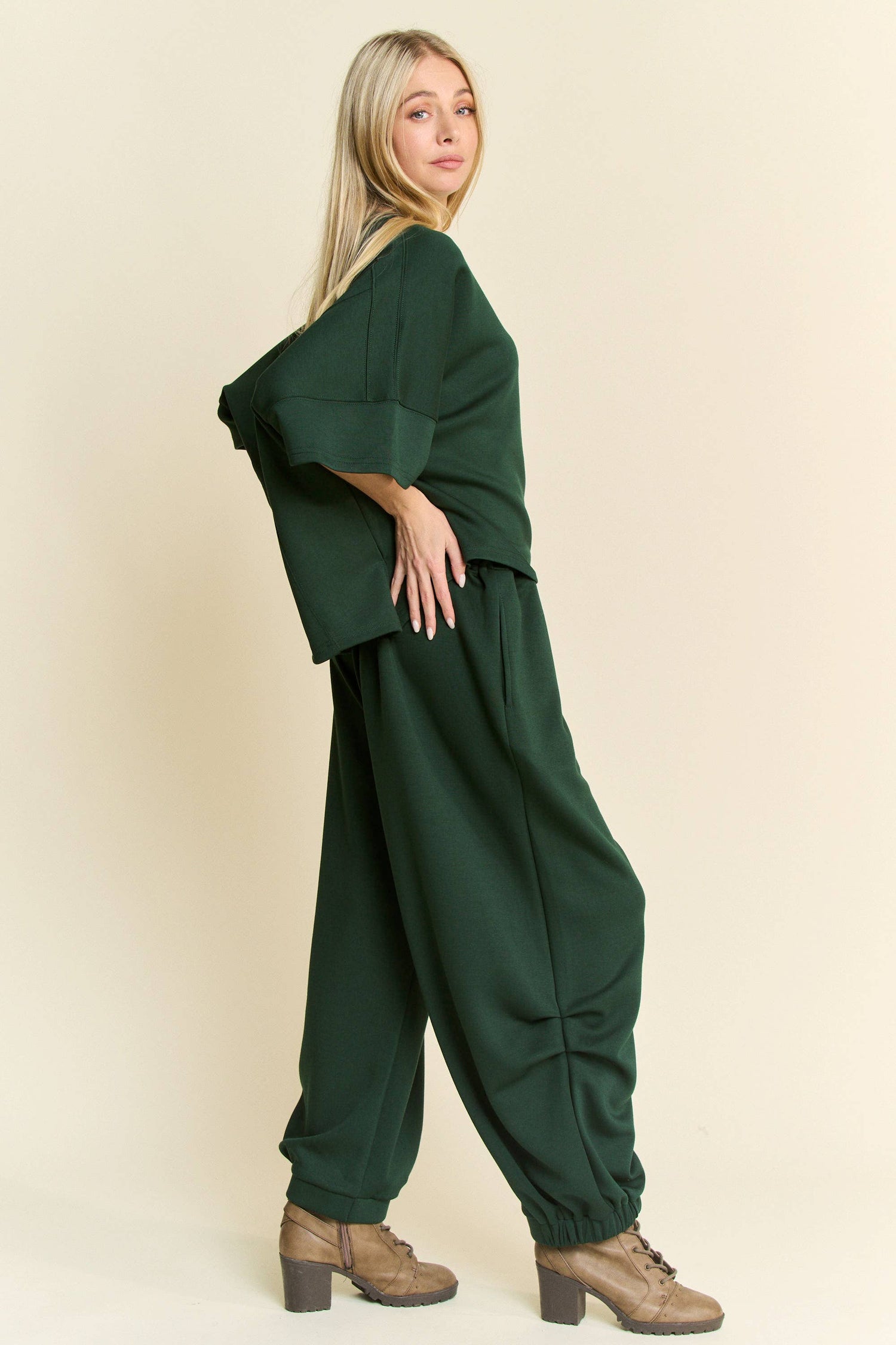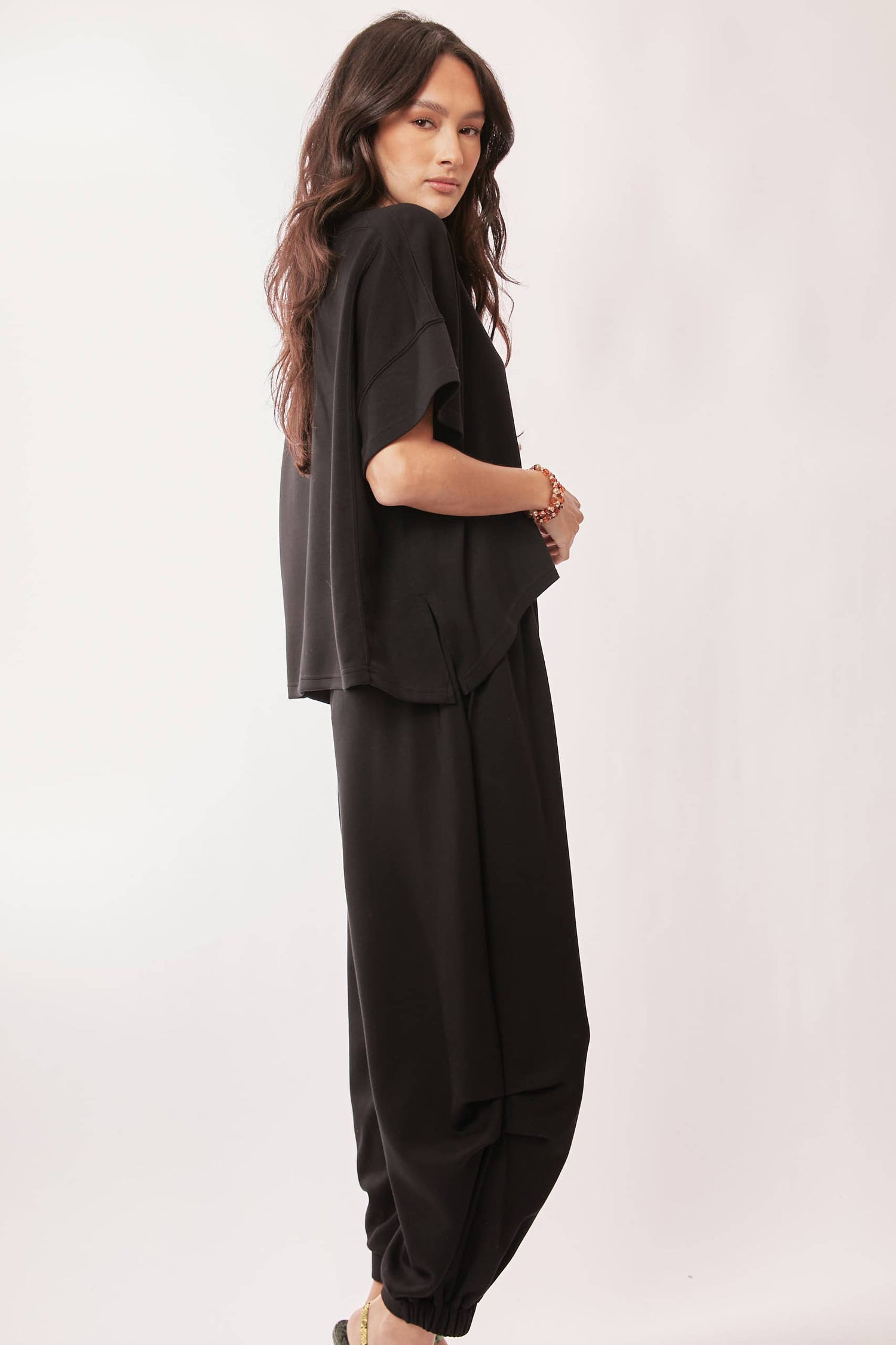 ELASTIC WAIST BANDED HEM SEMI-HAREM LONG PANTS SET