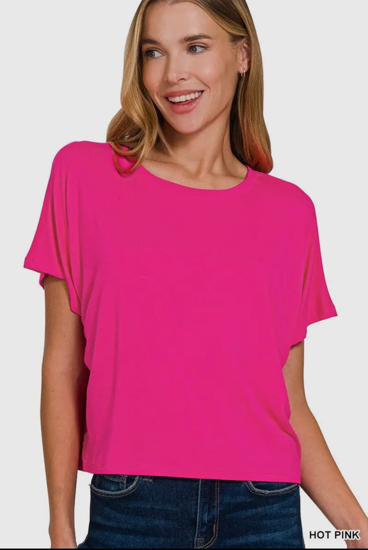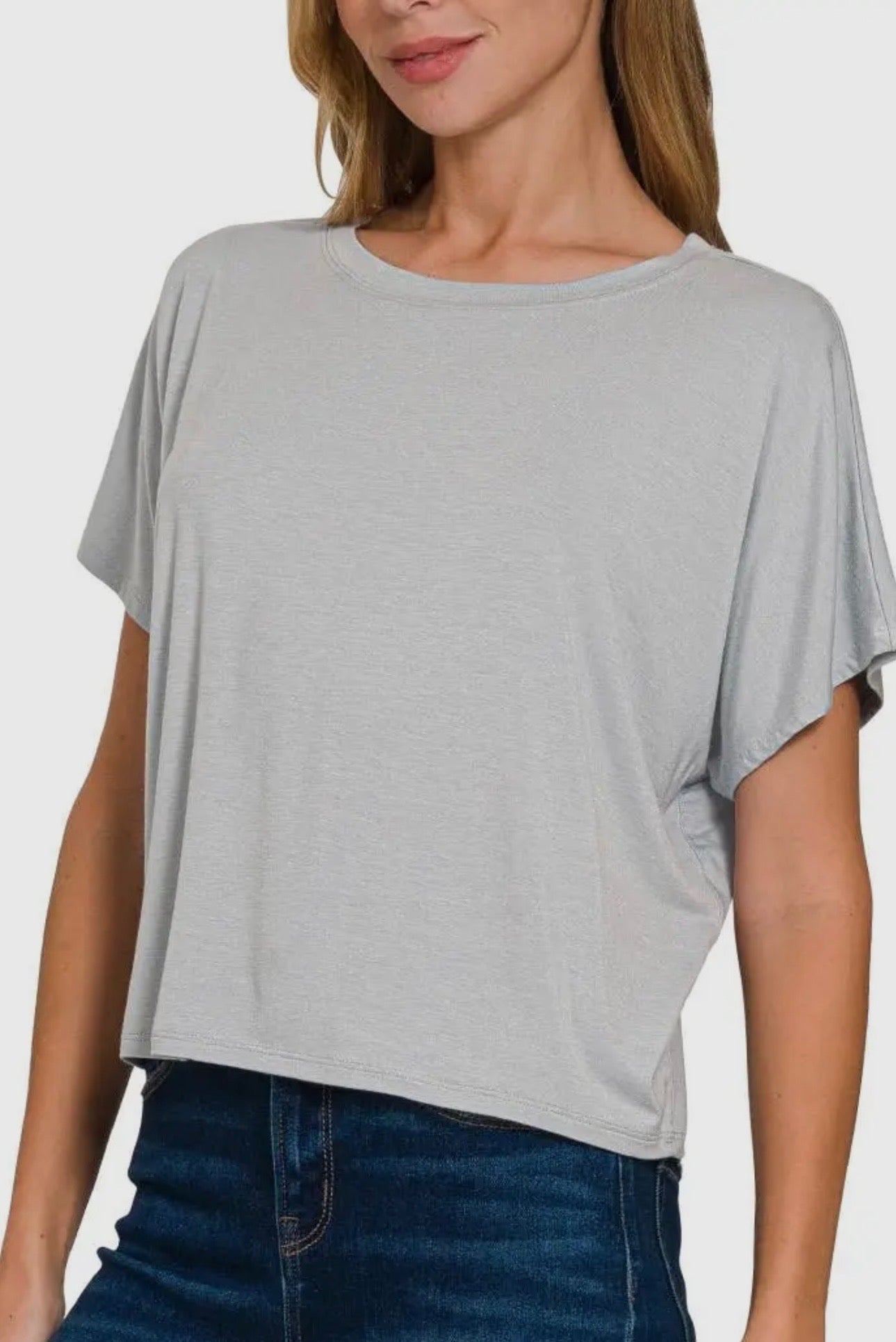 The Everyday Cropped Tee is a must-have for your wardrobe. Made with super soft and stretchy fabric, it offers ultimate comfort and versatility for any daily activity. Whether running errands, grocery shopping, or working out, its relaxed fit and round neck design make it perfect for all your hustle and bustle. Crafted from 95% rayon and 5% spandex, it feels like butter against your skin.
